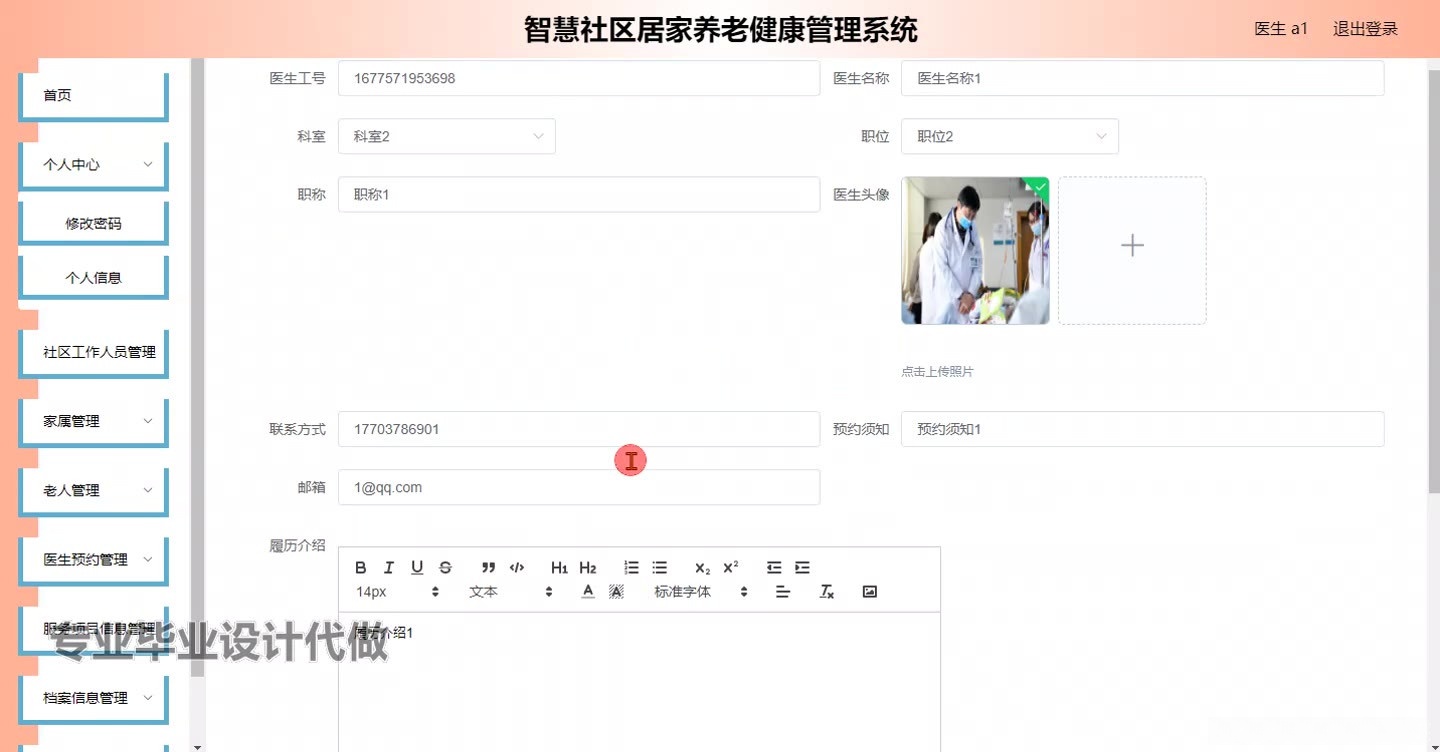 【源码 文档 导入教程 讲解】基于springboot vue智慧社区居家养老健康管理系统
