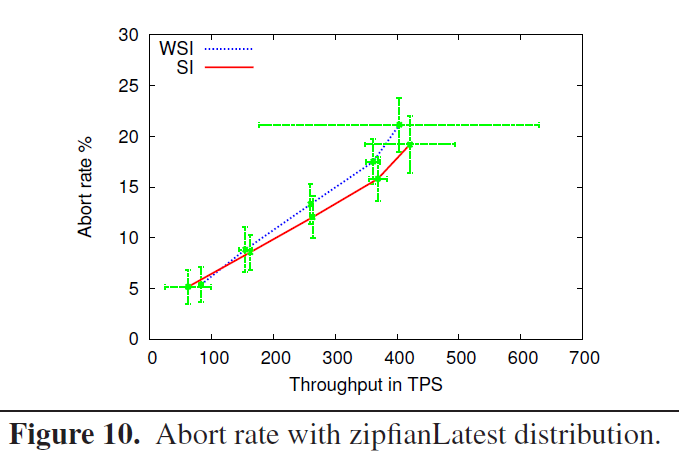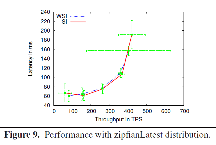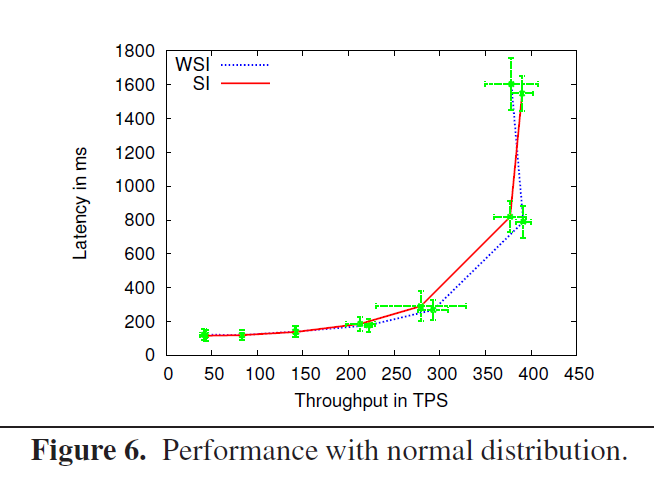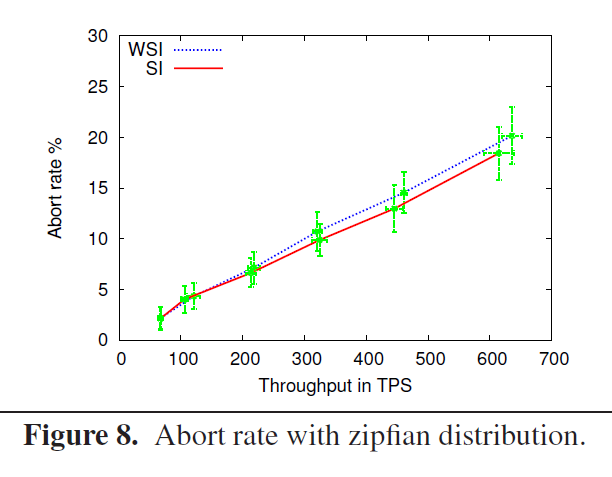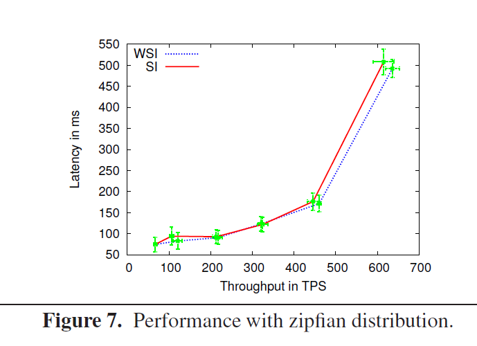 如图7所示,写快照隔离和快照隔离的性能是相当的。