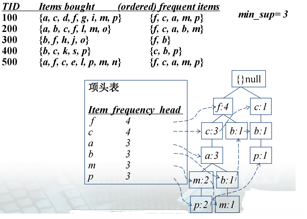 – 将各项目项集按照其频率值进行降序排序并生成频繁项头表文件