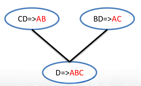 – 将CD→AB与BD→AC合并可得到D→ABC