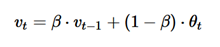 为撒要叫exponential呢?从公式中可以看到,在当前的vt中,时间上更久远的v所占的成分呈指数级下降,作为对比,Simple Moving Average则是等权平均一段时间内的序列值