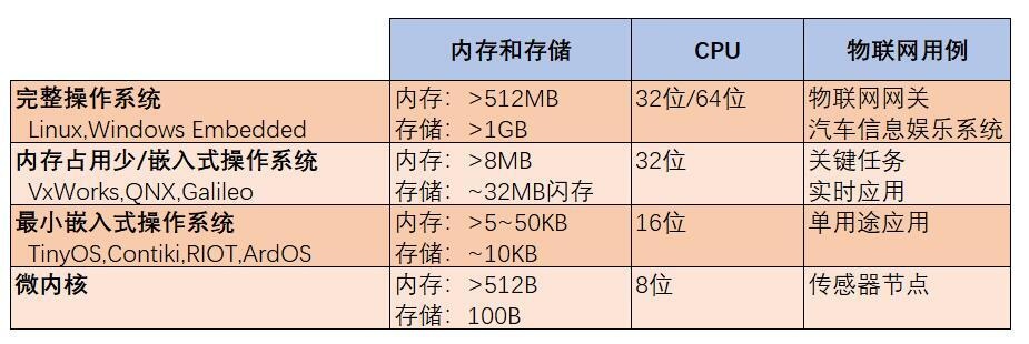 现在越来越多的传导嵌入式系统都被更高层系统所取代,如基于 Linux 的平台,上面提到的树莓派就可以轻松刷入各种高级操作系统。这是因为人们需要功能更丰富的解决方案,这就需要更丰富的底层操作系统功能(如通信、进程管理等)。下图总结了比较常用的网关层使用的底层操作系统。