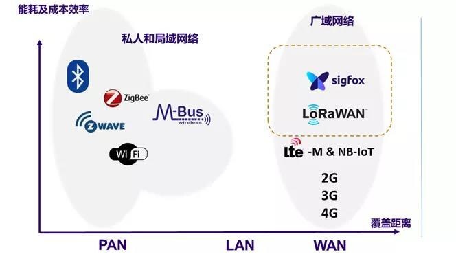 所有通信技术会根据能耗、成本、覆盖范围等因素形成了一个雷达区域。