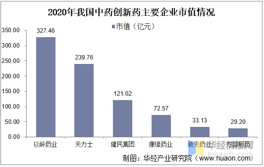 2020年我国中药创新药主要企业市值情况