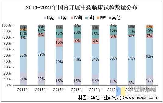 2014-2021年国内开展中药临床试验数量分布