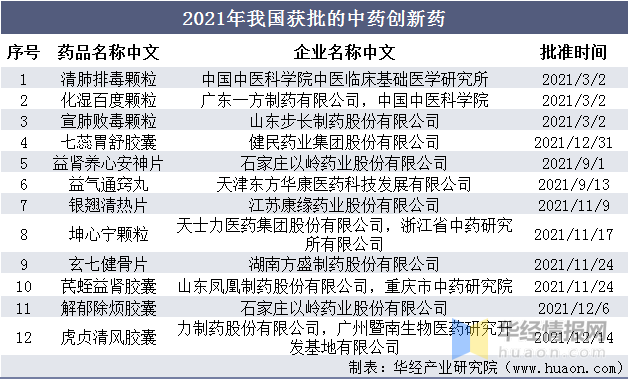 中医药是我国传统医学的重要组成部分,在传承与创新的过程中被视为新时代中国特色社会主义事业的关键领域之一。近年来取得显著成效,在2021年获得了多项突破性进展,在这一领域中共获得12个中药新药批准记录新高。在这一批新药中需要排除掉用于新冠肺炎治疗的国家 Trebing 的三种中成药(即清肺排毒颗粒、化湿败毒颗粒与宣肺败毒颗粒),因此最终新增的中药新药数量为9个。