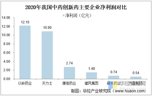 2020年我国中药创新药主要企业净利润对比