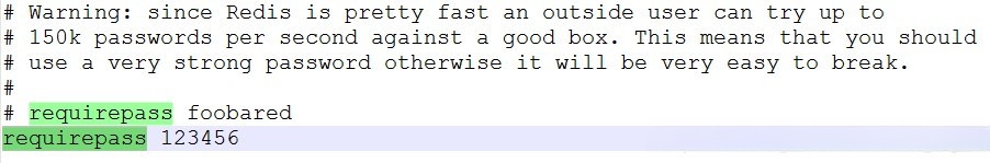 为了完成此操作,请向后插入一行新的requirepass 123456命令。