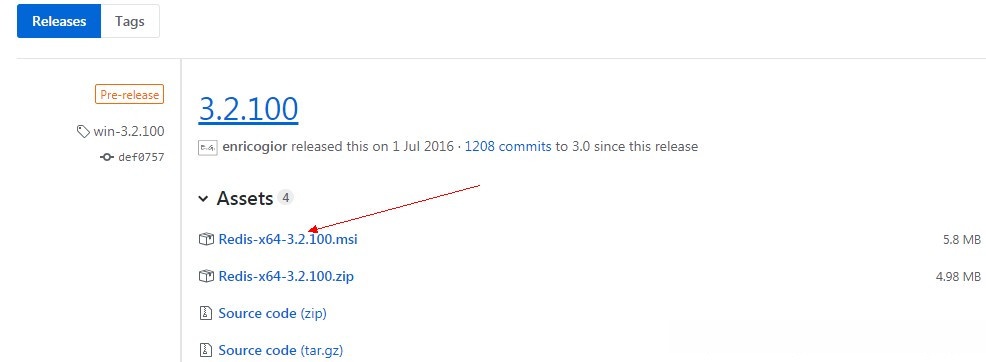 获取Redis安装软件包,请访问链接https://github.com/MSOpenTech/redis,并进入Releases页面选择对应的版本进行下载。首先点击该链接进入GitHub平台,在其上找到Releases部分后选择相应的版本进行 download操作。
