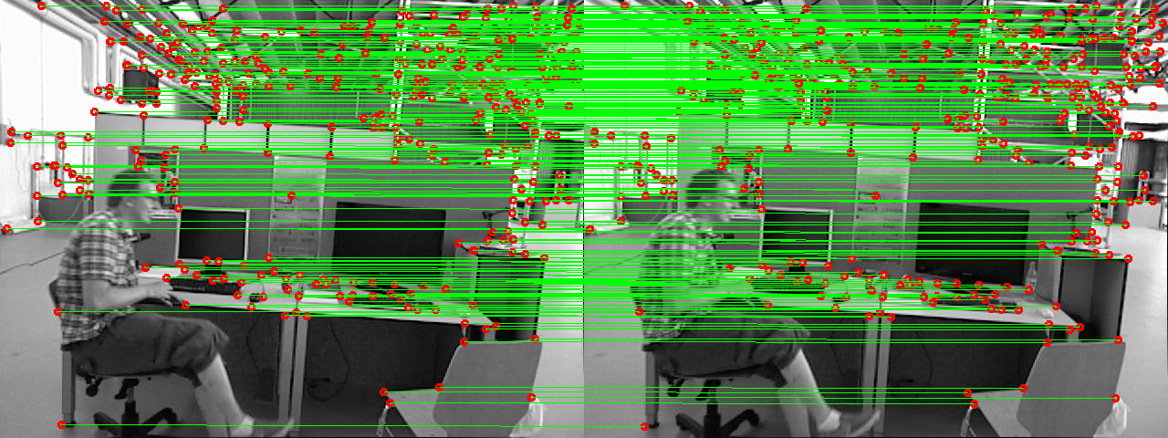 对于在两个连续帧之间确定对应的图像点而言,光流是一种便捷且高效的手段。通过减少错误对应的影响来应用RANSAC算法。事实上,这种方法本质上具有自洽性。为了使用对极几何约束检测动态特征,则必须依赖于基本矩阵F的估计值。另一方面,在计算光流的过程中存在一个限制:场景中的大多数特征必须是静态的这一条件导致了对场景动态特性的严格限制。这样RANSAC才能有效地减少剩余动态特征的影响。