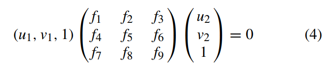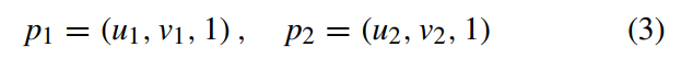 (u1, v1)和(u2, v2)分别是x1和x2的像素坐标。通过组合(1)(2)(3),我们可以得到(4):