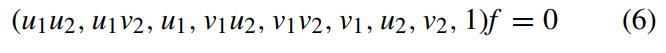 设 f 表示包含基础矩阵 F 所有元素的向量: