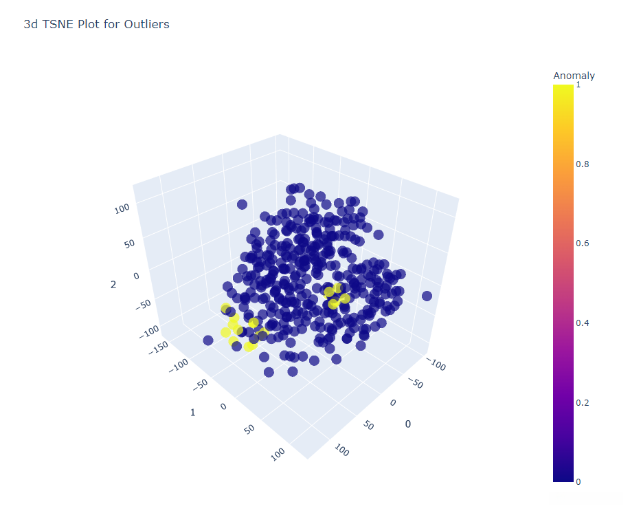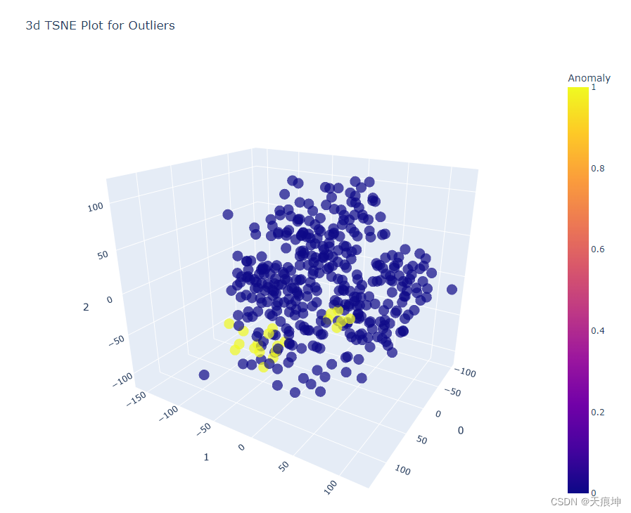 6.PyCaret 中 为 算法使用plot_model() 函数 ,它将为异常值创建一个 3D 图,在其中我们可以看到为什么某些特征被视为异常。