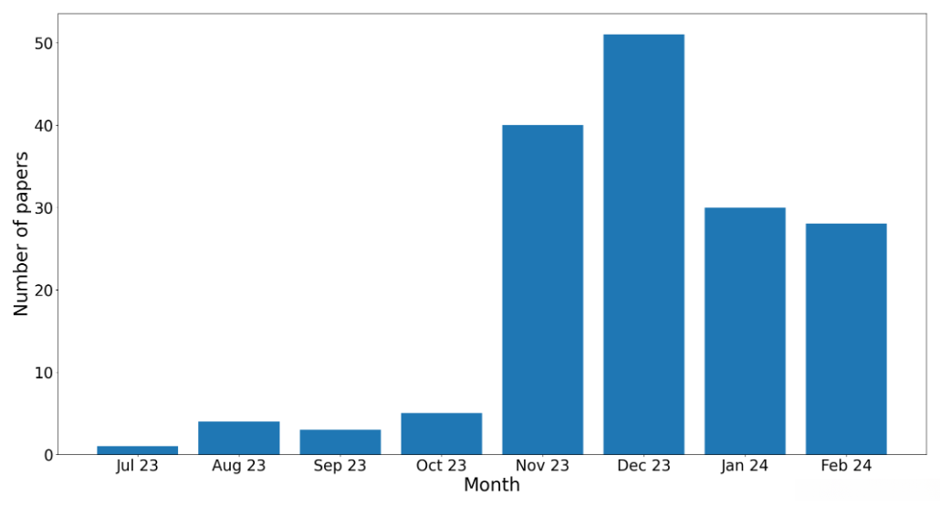 Estimated figure of publications pertaining to Gaussian Splatting since its establishment in June 2023.