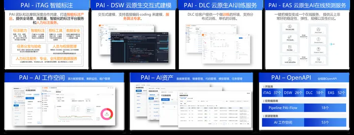 阿里云人工智能平台PAI致力于实现从产品设计到部署运维全流程智能化管理。该平台整合了iTAG智能标注技术、DSW交互式建模解决方案、DLC AI训练服务系统以及EAS在线预测模型等核心功能模块,在保障服务质量的同时显著提升了企业级解决方案在各行业的实际应用效能。通过构建覆盖产品开发到运营维护各环节的一体化智能化服务体系, PAI为各类应用场景提供了全方位的技术支撑与服务保障, 有效推动了企业在人工智能领域的创新与发展