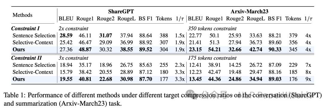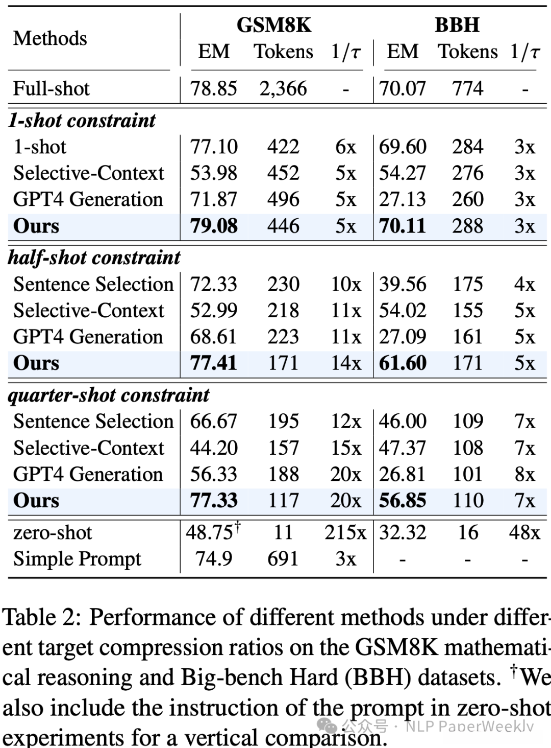 *Tokens : 在给定压缩比下,压缩后的提示中的令牌数量。