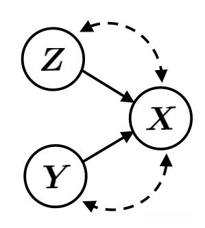 其中Z表示样本属性,Y表示类别属性。忽略混淆因素,给定Z和Y可以从条件分布P_{\theta }(X|Z,Y)生成X。同时给定X是可以通过后验