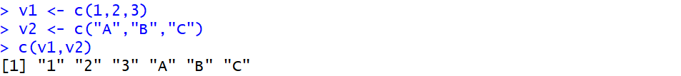 ** 如果一个向量中同时包含数值和字符串,R会将数值数据转化为字符串。