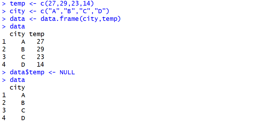 x[-1] #[1] 3 5 7 9,把第一个元素除掉,x[-n]即为去掉第n个元素