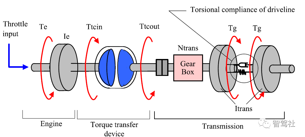 图1.发动机,扭矩传递装置和变速器之间的扭矩示意图