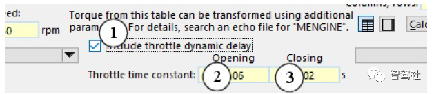 该系统涉及一阶时滞的问题。当选该参数被启用时,系统会显示与当前参数相关的其他数据字段(例如②和③)。若未被选择,则发动机油门操作将立即响应而不会产生延迟。