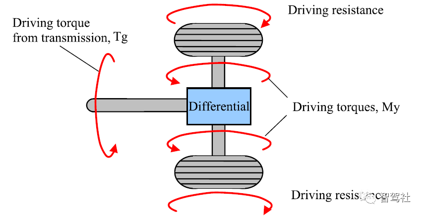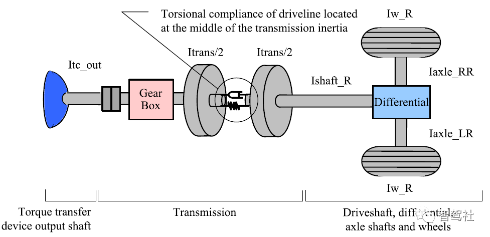 其中Iaxle_R是后驱动轴惯性,涉及驱动轴和车轮两侧的所有惯性,例如: