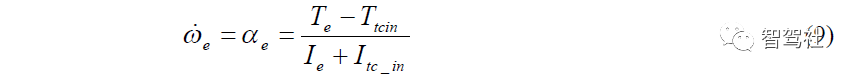 其间的相互关系由发动机扭矩 Te、发动机转动惯量 Ie、发动机角加速度 ae、 torque transmits device side inertia moment Itc_in 以及 torque transmits device input torque Ttcin 等因素所构成。