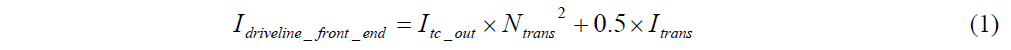 传动系惯性的后端受所采用的动力总成类型的决定。当采用后轮驱动(RWD)时,则传动系惯性的后端数值为(另请参见图6):