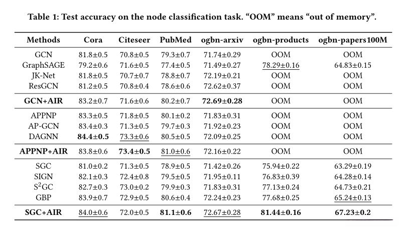 的优势,配备AIR的GNN优于大多数具有浅层架构的GNN,而与AIR相关的时间成本可以忽略不计。