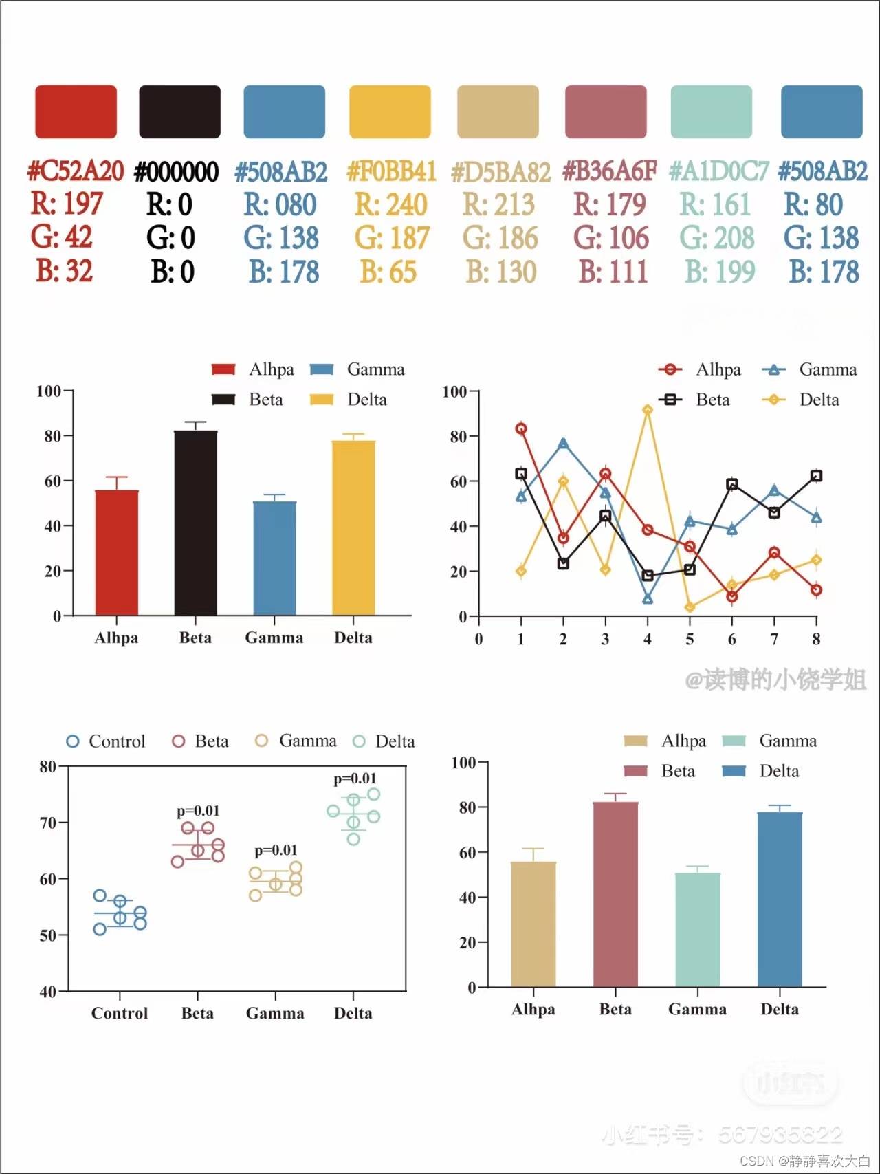 - 整个论文的配色风格需要一致,比如说后面的折线图、柱状图、散点图最好还是以前面框架的颜色一致。(如果前面模型图是淡蓝色,后面再出现过于鲜艳的其它颜色就有些突兀)