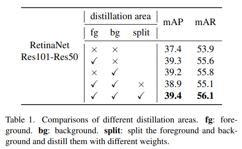 知识蒸馏技术能够展示其迁移能力,并将其复杂的教师网络的知识转移到紧凑轻量的学生网络中,并且无需额外推理成本。众所周知,在目标检测性能方面,前景与背景类别不平衡可能会影响蒸馏效果。