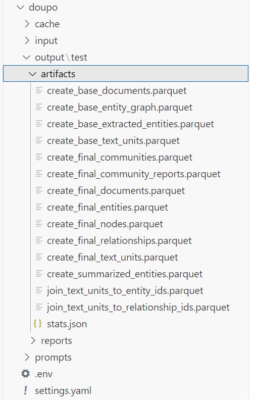 当GraphRAG完成索引过程后,它默认会将构建知识图谱所需的所有数据持久化 。这些数据被存储在输出目录中,并采用Parquet 文件格式。在查询阶段,这些Parquet文件会被加载到内存和向量数据库中。这样做的好处在于,我们可以直接从内存和数据库中检索信息,而无需再次从原始数据源抽取和处理数据。