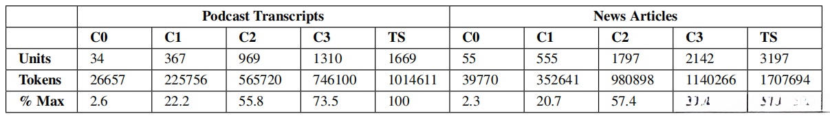 Unit: 对于C0-C3指社区摘要,对于TS指文本块