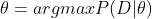 在最大似然估计中,视θ为一个固定值,并认为其概率密度函数P(\theta)是一个常数。基于现有数据得出的概率密度函数P(D)同样被视为一个常数。由此可知: