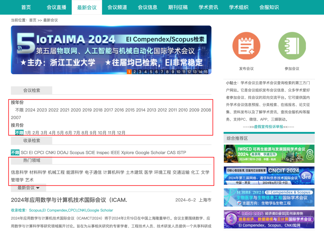 这是知有据可循的平台也是可靠性较强的渠道首页会提供推荐内容以及最近召开的会议列表