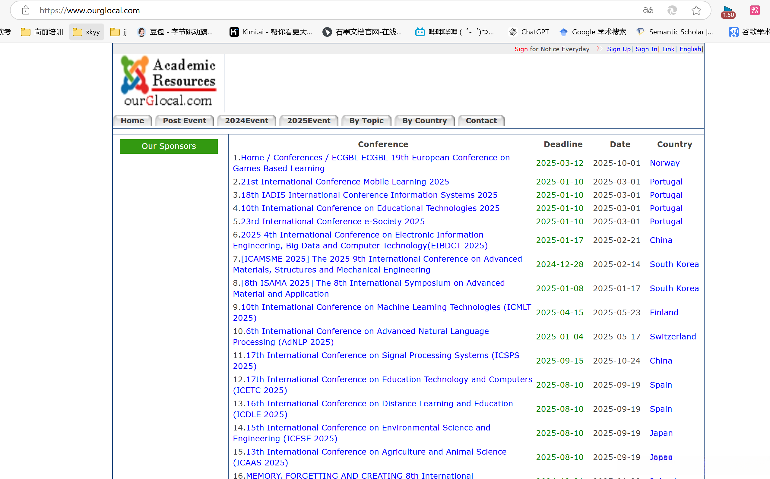 国外知名的网站平台负责发布国内外的国际性学术会议信息,并根据时间、学科以及地域等因素提供详细的会议查询服务。