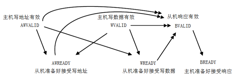 写响应通道的信号:S_AXI_BRESP,S_AXI_BVALID,S_AXI_BREADY。