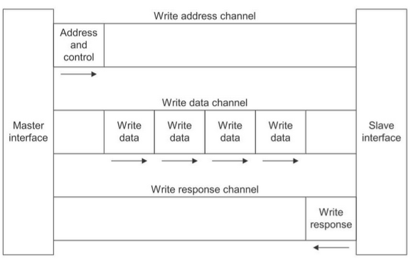 AXI系统包含五个通道(五个互连组件),每个通道均配备一对valid和ready信号用于同步数据传输与控制操作。发送端设备利用valid信号表明其准备接收有效的数据与控制指令;接收端设备则借助ready信号确认其已准备好接收相应的指令与数据。当valid与ready均为高电平状态时,则表示存在有效的传输信息。各通道之间能够实现独立的通信握手机制,在此过程中彼此间的关系较为灵活多变。对于读取操作而言,则必须紧跟与其相关联的数据地址的操作;而对于写入操作而言,则必须在其相关的write操作完成后才能执行相应的响应处理