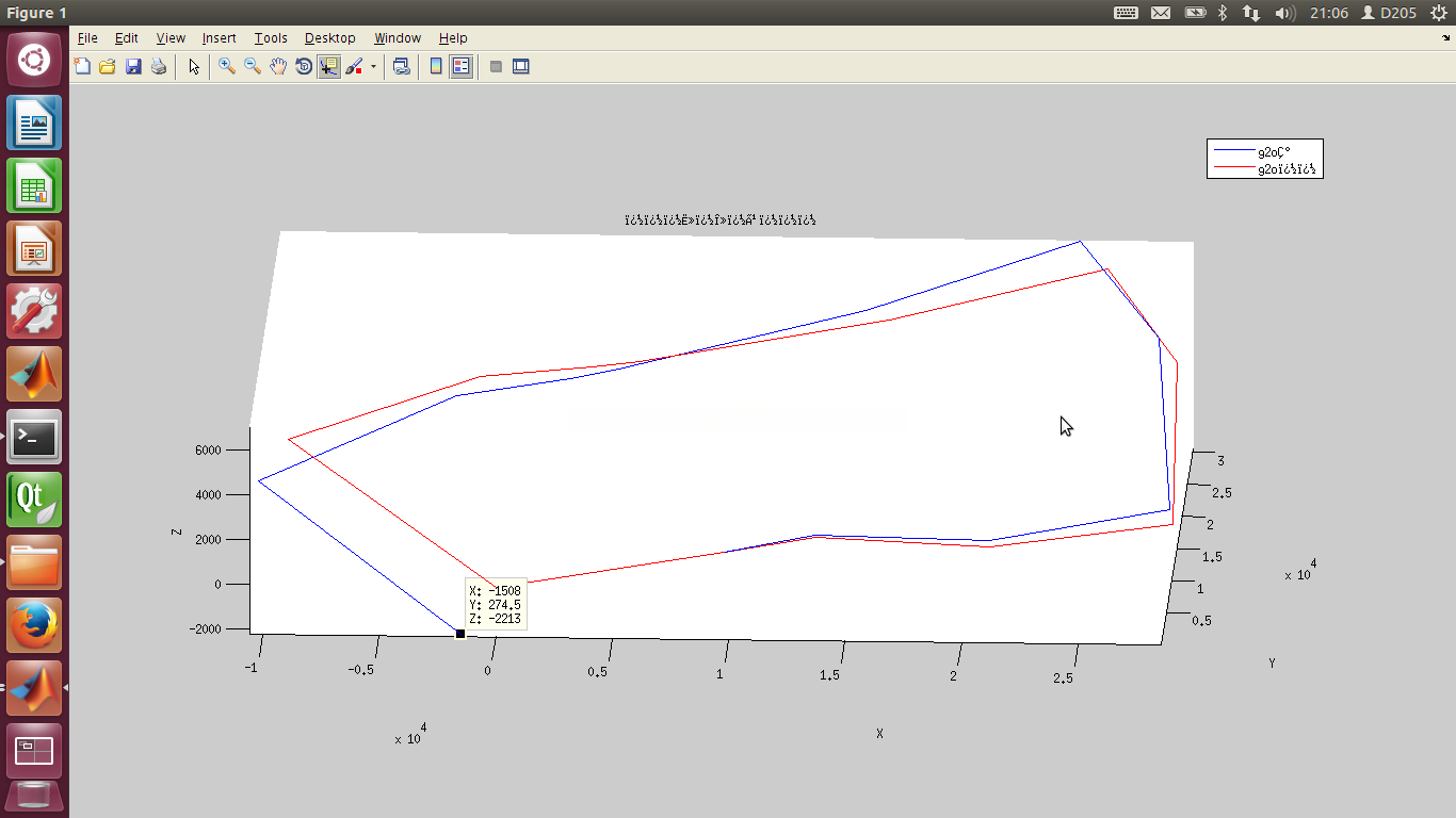 通过matlab绘制出了poses图,在该图表中用蓝色线条标识的是在g2o处理之前的轨迹线段(即初始路径),而红色线条则代表经过g2o优化后的路径线段(即最终确定的最优路径)。起始点设置在坐标[1,1,1]的位置上。从图表中可以看出,在处理完所有poses之后得到的结果为最后一个pose点坐标为[-1508, 274.5, -2213](相对于起始点而言差距显著),而起始点位置与之相比发生了明显的变化,并且经过g2o优化后两者几乎重合,并对其他所有poses进行了必要的修正以提高整体精度
