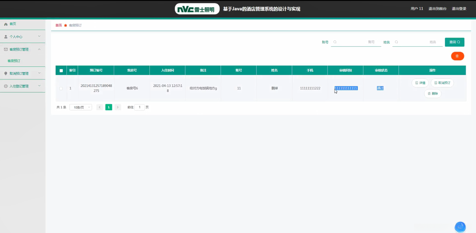 - 取消预订管理:对已经预订的客房进行取消预订操作,包括对取消预订的审核等。