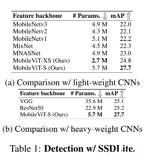 MobileViT 在相同的计算资源下,在图像分类、物体检测及语义分割等移动视觉任务中展现了卓越的性能,并超越现有轻量级卷积神经网络(CNN)的表现。