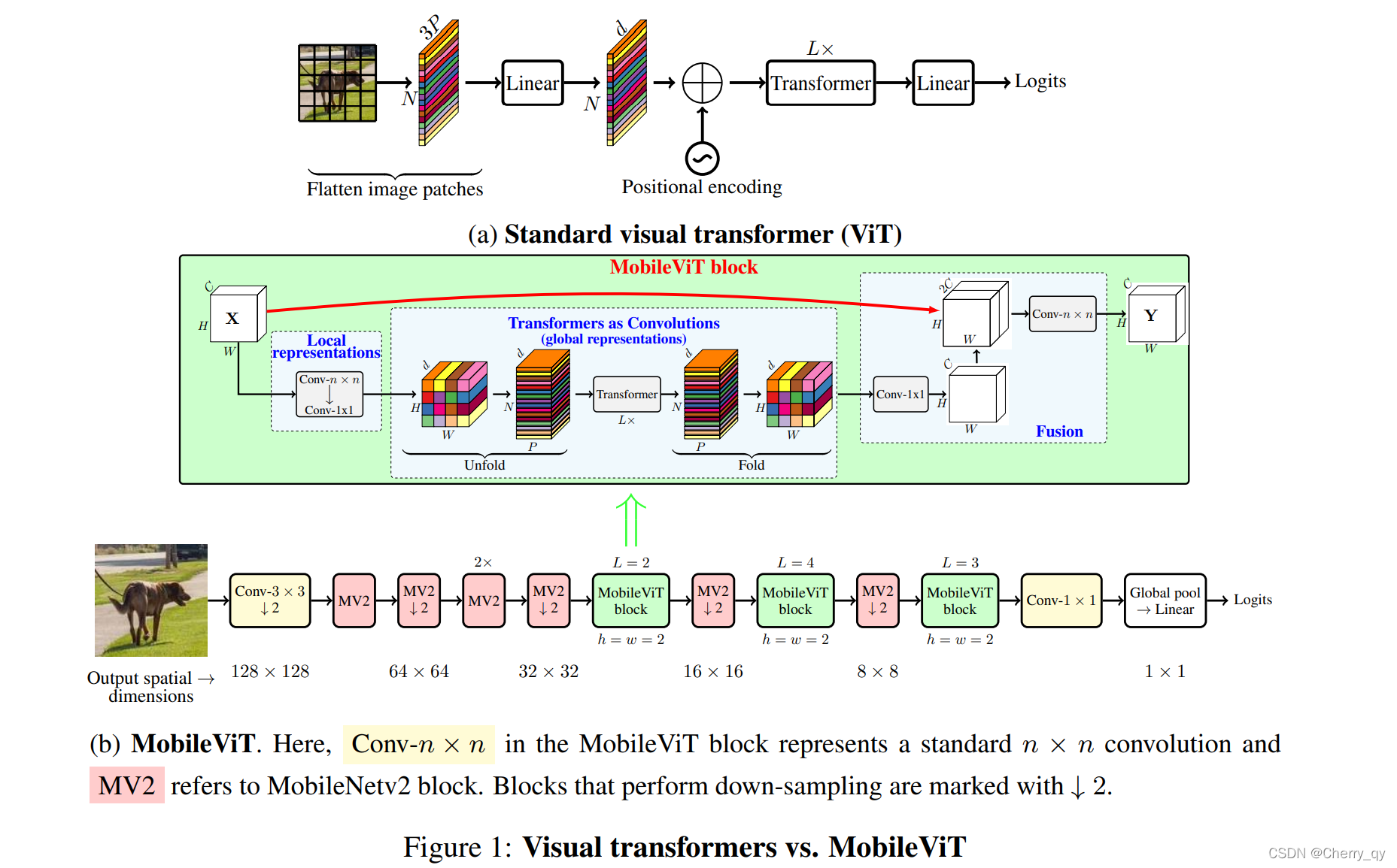 MobileViT块通过标准卷积和Transformer分别提取局部和全局特征。由于现有研究表明,在采用这些层设计的网络中存在较高的计算开销, 那么为何MobileViT能够实现轻量化呢?