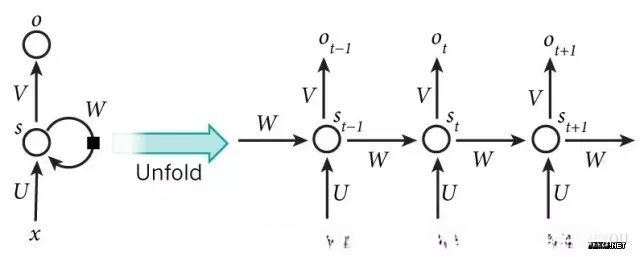 用下面两张图简要说明下,RNN模型有多个时刻的输入,从第一个图中看到输入x、隐层s和输出o都与时刻t有关,可以看到上一时刻的隐含层会影响到当前时刻的输出,这也就使循环神经网络具有记忆功能。