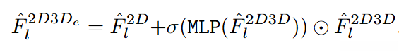 不仅用于融合2D特征,还用于增强3D特征,最终融合后的特征可以由下述公式表示: