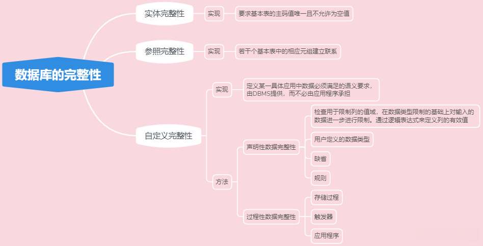 这里面需要了解具体是如何实现的?比如实体完整性、参照完整性以及用户自定义完整性都是通过什么来完成的呢?老师在课件中已经对此进行了详细的总结。