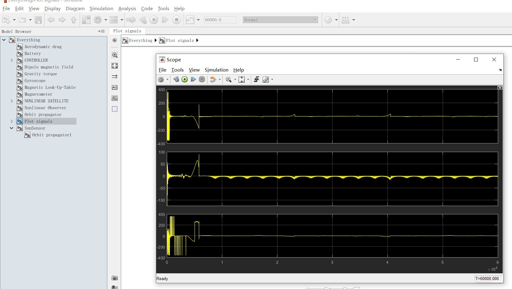 步骤1:建立卫星姿态轨道控制模型。在建立卫星姿态轨道控制模型时,需要考虑卫星的物理特性和运动规律,包括卫星的质量、惯性矩阵、姿态角速度、姿态角度、轨道参数等。可以基于Matlab等工具进行编程,并将其导入到Simulink中进行仿真验证。