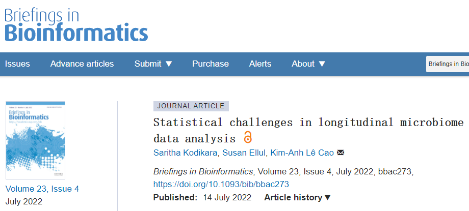 Kodikara S, Ellul S, Lê Cao K A. Statistical challenges in longitudinal microbiome data analysis[J]. Briefings in Bioinformatics, 2022, 23(4): bbac273.