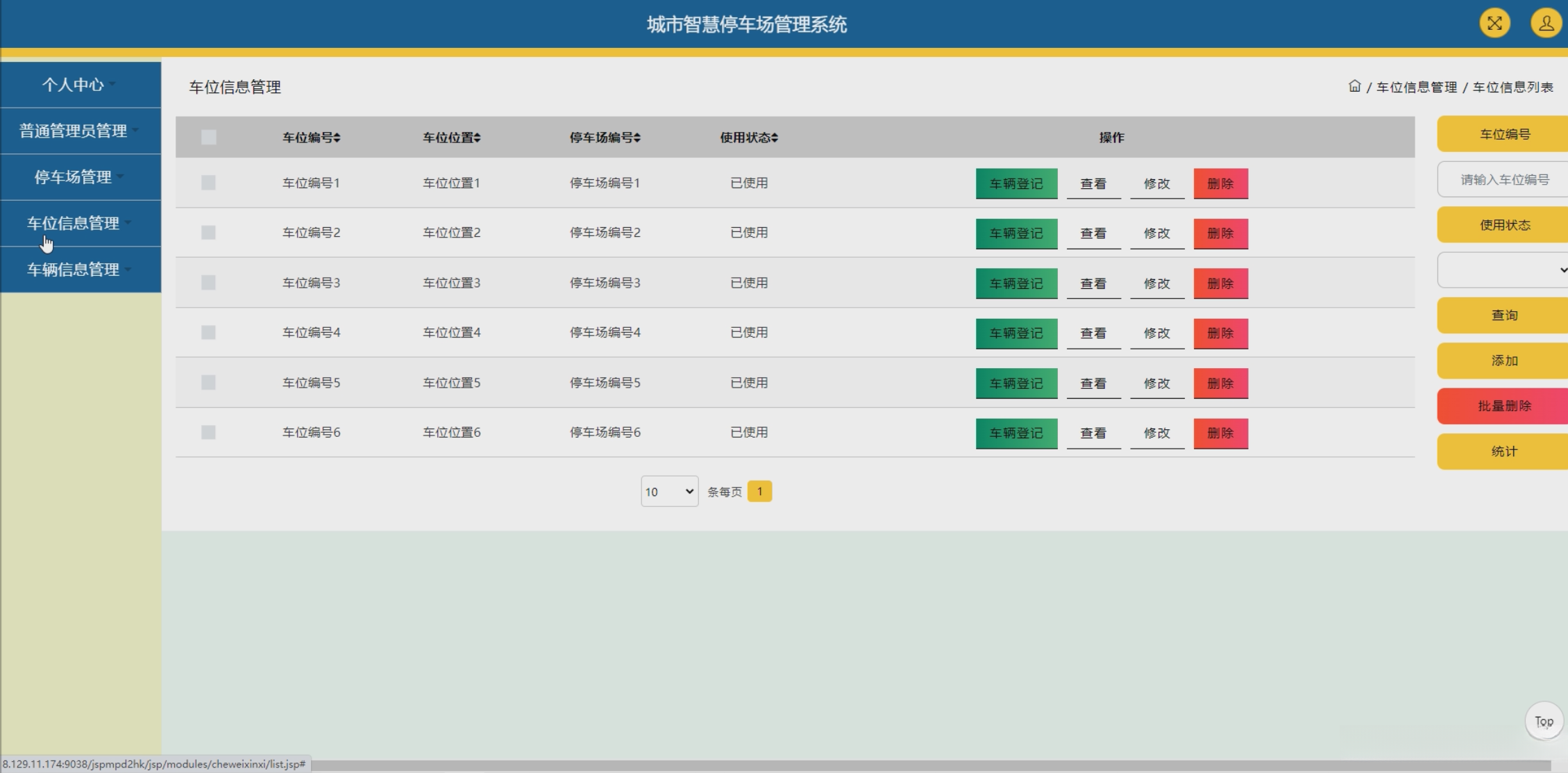 - 普通管理员操作模块:为管理人员提供一个在线操作界面,在线完成车位管理和车辆管理相关事务,并支持生成各种统计报表。