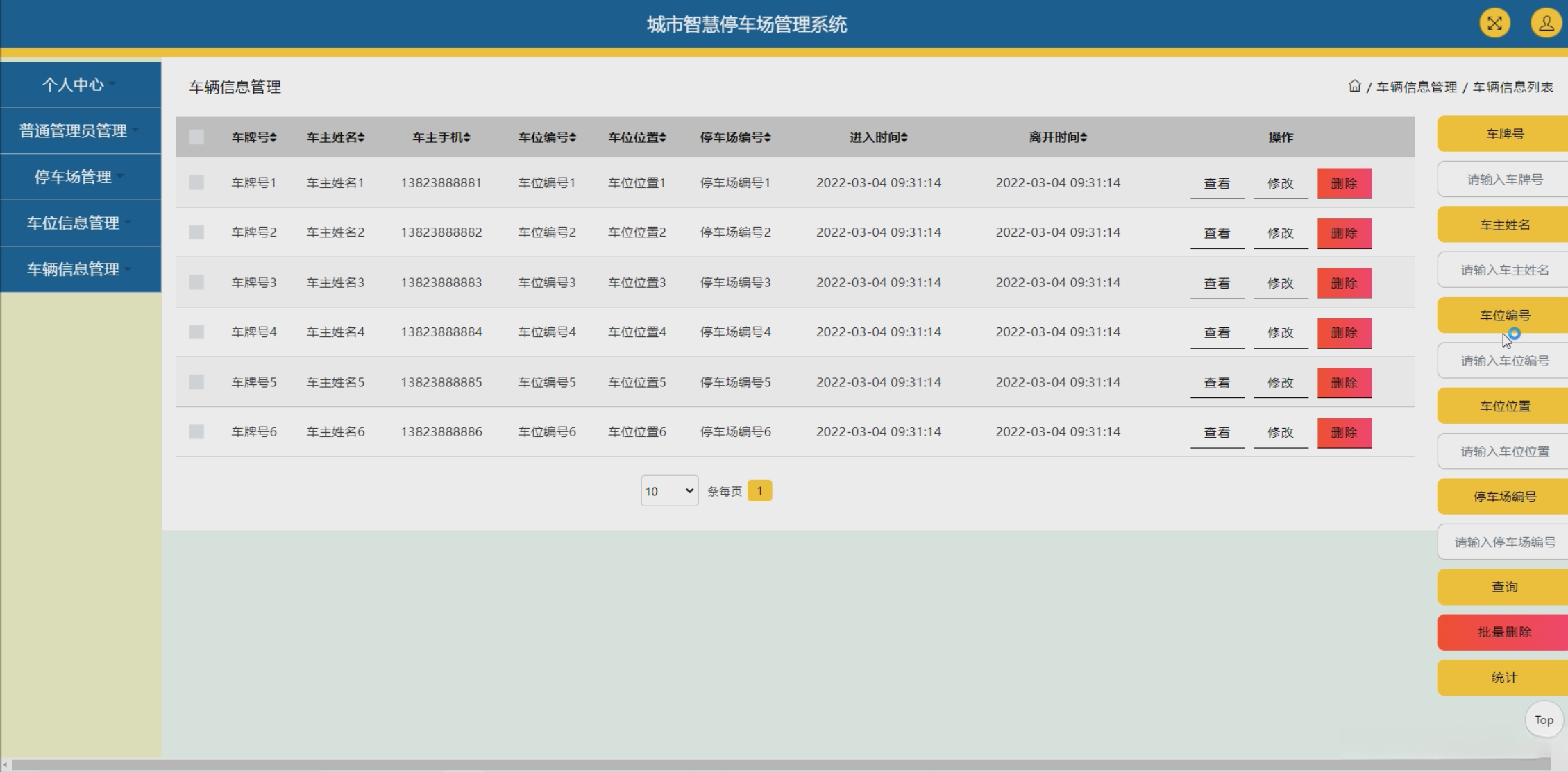 - 车辆管理模块:记录并处理车辆进出记录信息,并具备车牌识别和自动计费功能;同时提供车辆信息查询及报表生成服务。