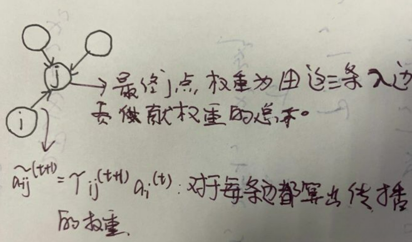 其中,要保证在图中所有节点的权重和保持初始的1不变。即: